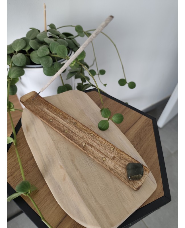 Porte encens bois Ski 25 cm avec pierre accrochée en labradorite.